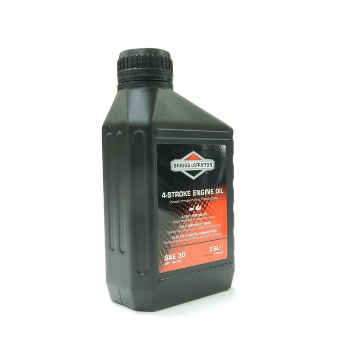Huile spéciale Briggs et Statton SAE30 pour vidange moteur tondeuse 4 temps.